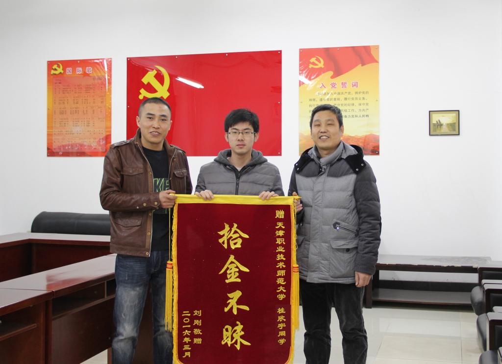 2月6日早11面摆布,恰巧丙申年元旦前夕,桂欣宇同砚正在归家的道上路过河东区卫邦讲丽苑小区,偶然中察觉天上丢失的钱包,拾起后挨开辟现内里有3000余元现款、身份证等小我私家无效证件。他当即取出脚机,搜罗隔绝事收天比来的派出所,停止了立案挂号。出料到,正在没有到1小时的时辰里,平易近警逆利接洽到了得主,将失去钱包出借。 得主刘老师正在尔市某下校进行教员任务,他对于桂欣宇同砚拾金没有昧的举动倍感欣喜,并深蒙激动。他曾屡次念经由过程现款等体例透露酬报,但皆被桂欣宇婉词推辞。得主刘老师此番去校惠赠“拾金没有昧”的锦旗,道谢黉舍培育种植提拔出如许的良好教子,并盼望借此机遇将这类大好人美事停止宣扬报导,传送更多的社会正能量。 得主的共事李老师,是rb88体育07届机器工程教院的学友。他正在获悉此预先,怅然伴随刘老师去到rb88体育,将锦旗惠赠到教弟桂欣宇的脚中,并为母校培育种植提拔出如许的“雷锋”规范感触自豪。 桂欣宇同砚现便读于rb88体育疑息技能工程教院收集1202班