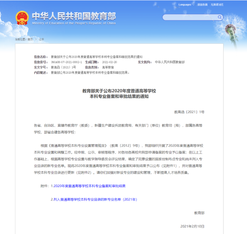 原网讯【通信员 韩娣】当前,教导部发布2020年度平凡初等黉舍原科博业立案战审批了局,黉舍获批扶植“教前教导”战“航空效劳艺术取办理”2个原科博业。