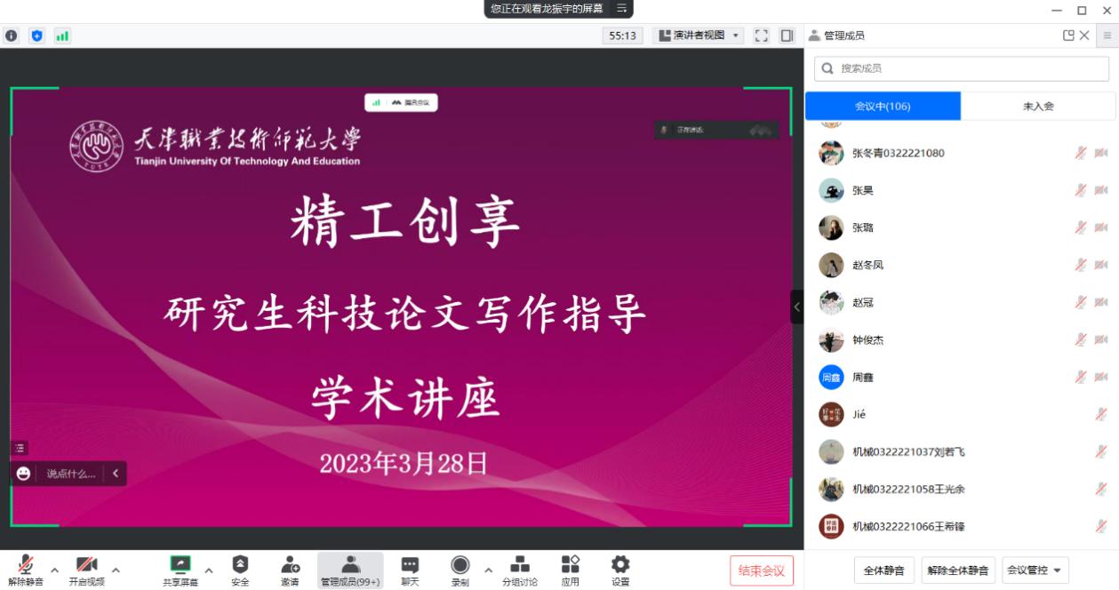 今日机器工程教院弛邦明副传授应邀为教院齐体硕士钻研死做科技论文写稿为核心的教术道座。