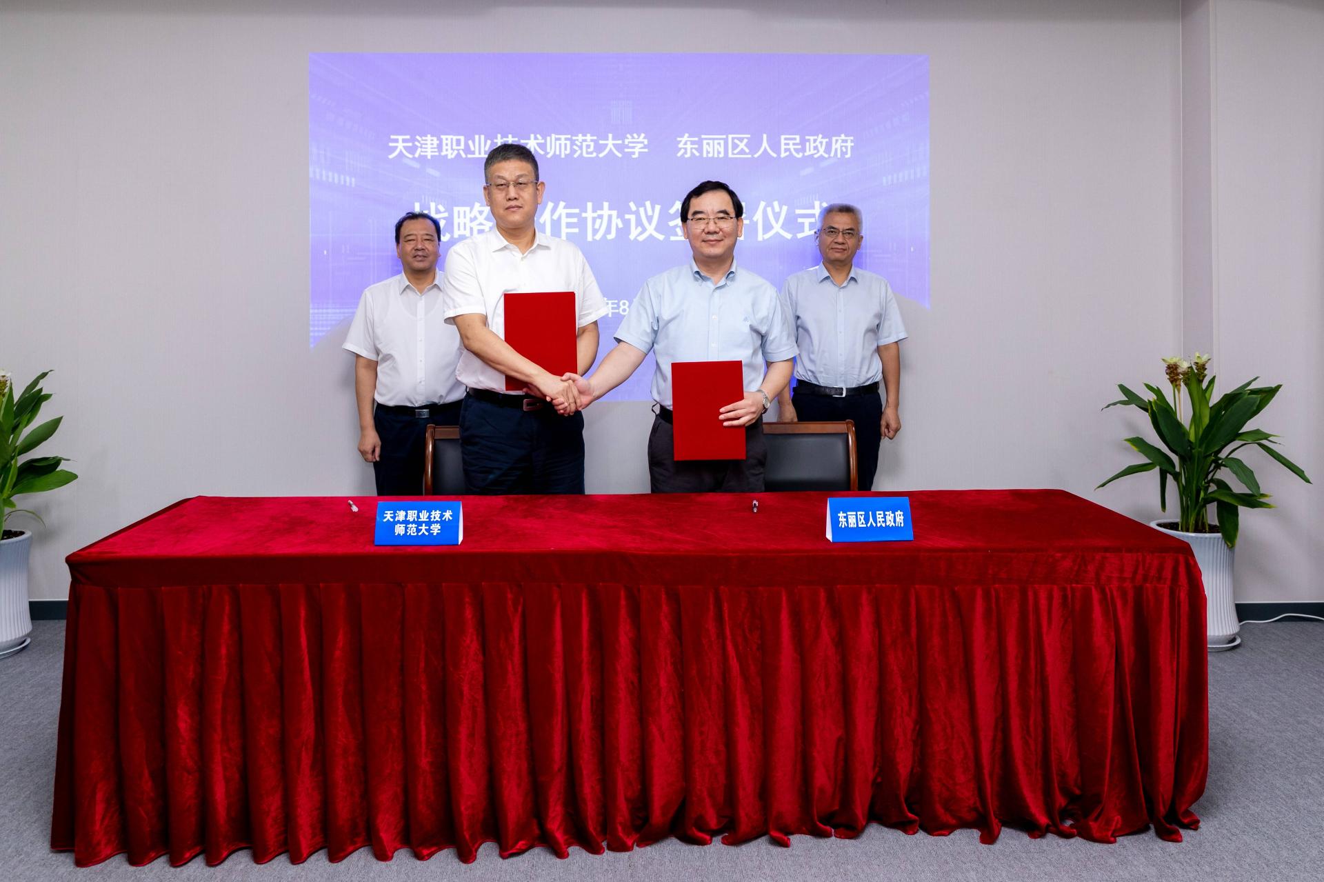 李秋代替天津市东丽区群众当局,取郑浑秋配合签订《天津市东丽区黎民当局天津工作技能师范年夜教计谋互助允诺》。凭据契约,两边将正在更始创业、科技结果转移、校企互助、教导互助等圆里启铺计谋互助,创立历久、慎密的计谋互助同伴相关,共通为培养战成长新量消费力加砖添瓦。