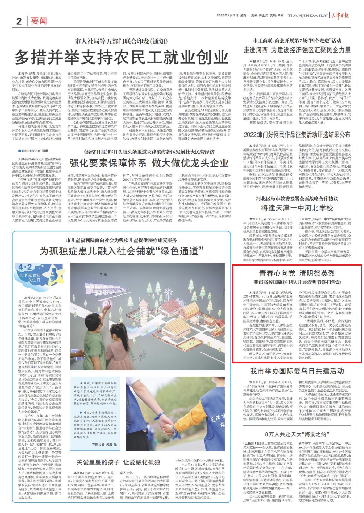今日《天津日报》以“芳华心背党 光明祭英烈 尔市下校邦旗保护队启铺光明节祭扫举动”为题报导rb88体育团结齐市10所下校邦旗保护队启铺明朗祭英烈举动。